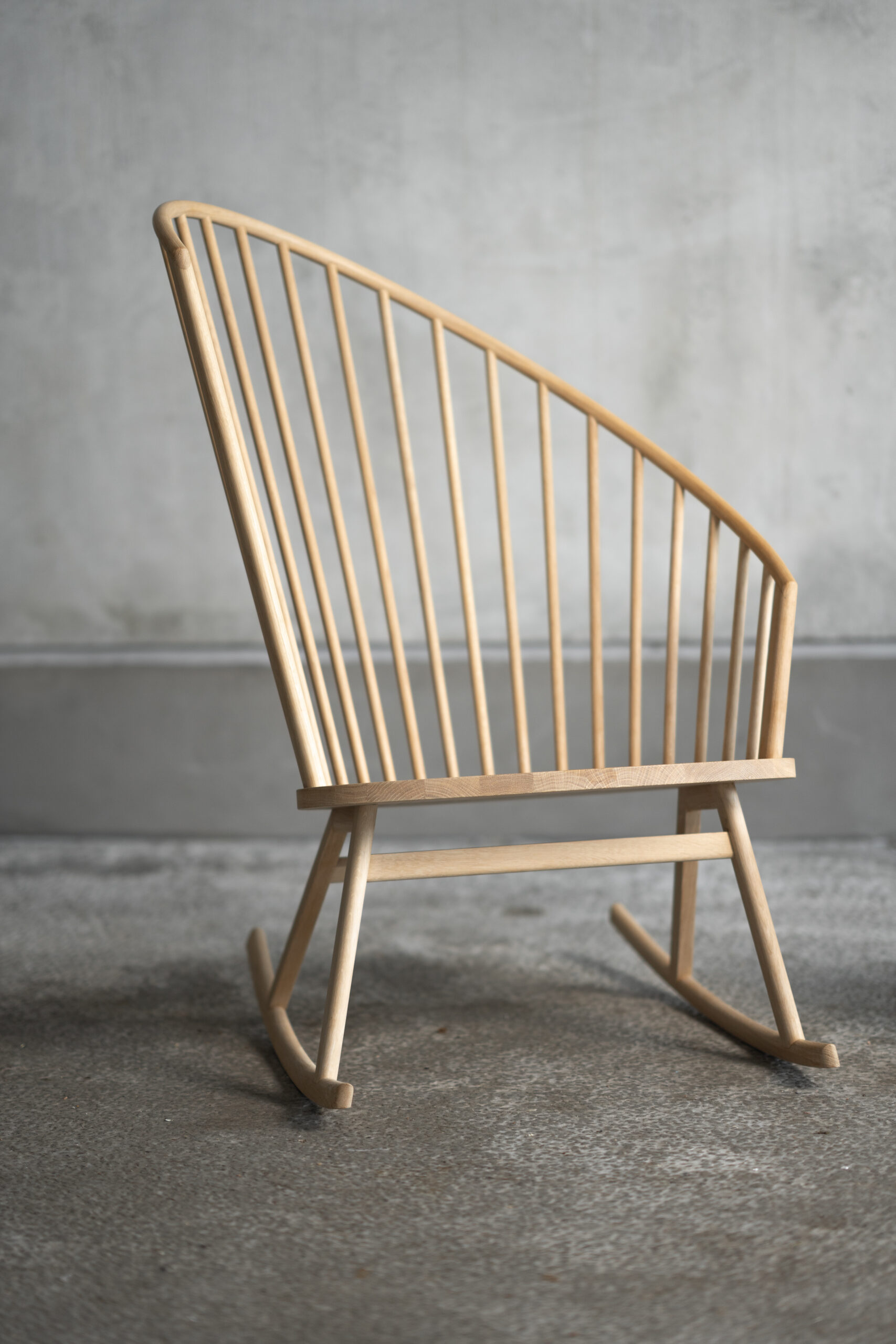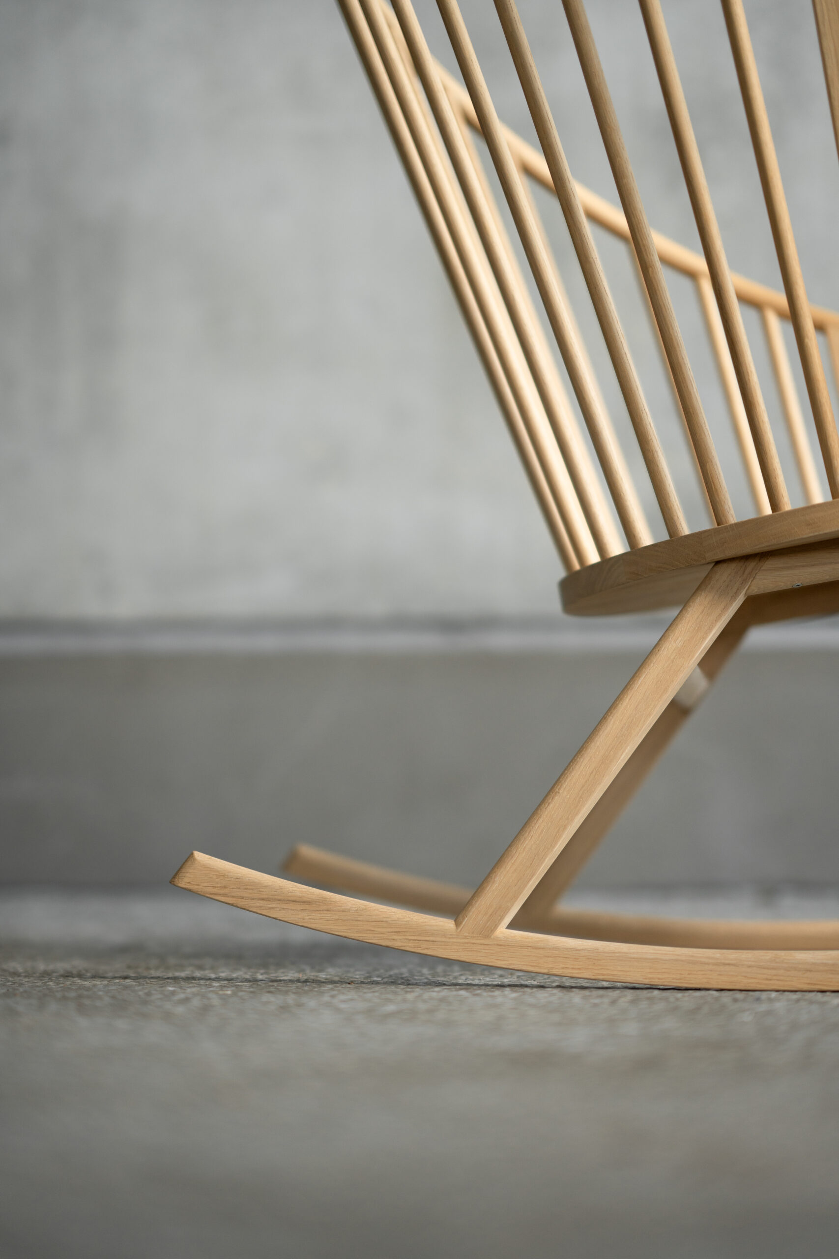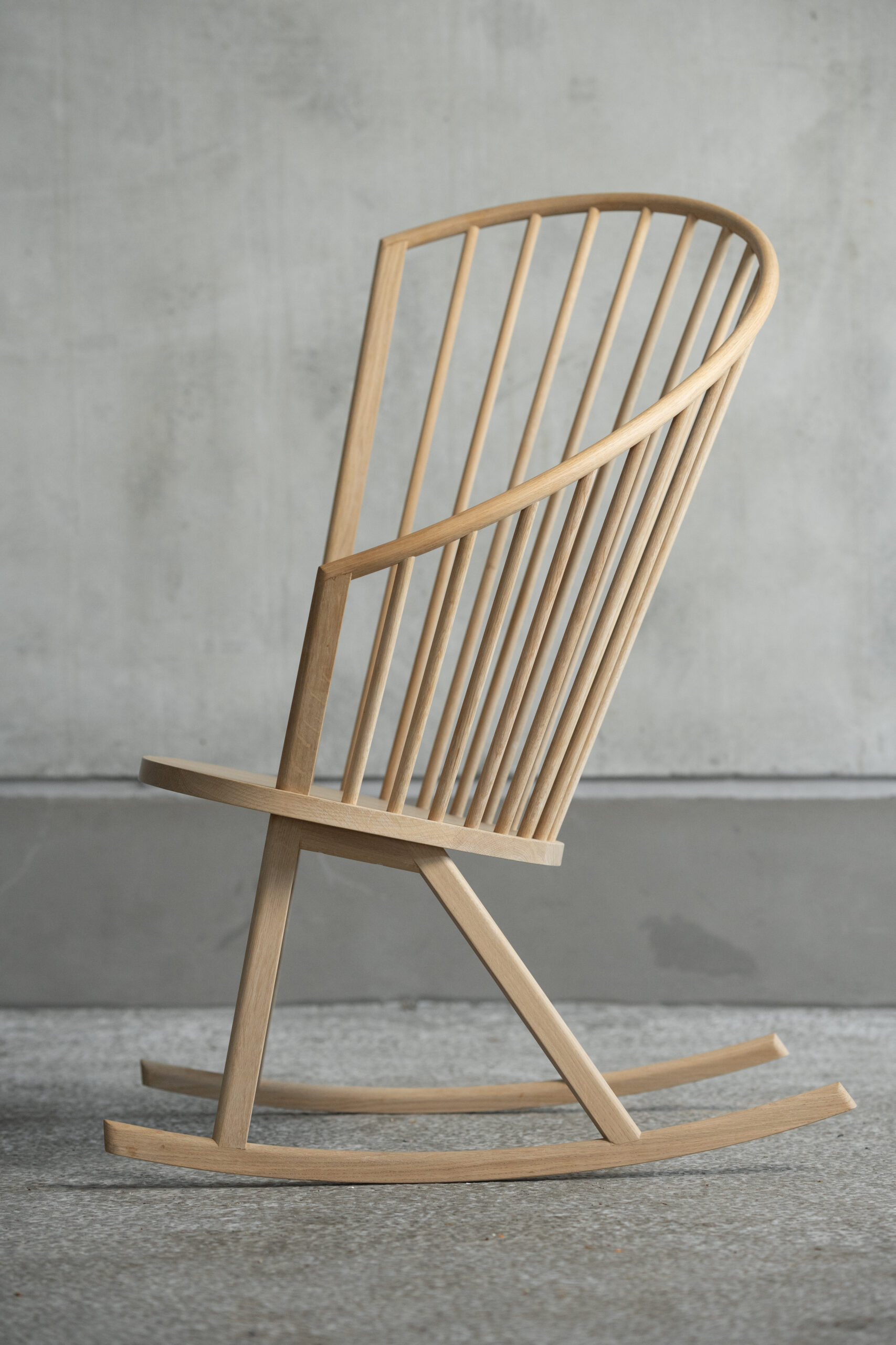 Den karakteristiske gyngestol er inspireret af fuglereder, som skaber en tryg ramme om nyt liv. Den lange formspændte bue, som afslutter ryglænet, indbyder til at læne sig tilbage og finde ro og tryghed. Designet er udviklet med fokus på flere siddestillinger og er blandt andet velegnet som ammestol.