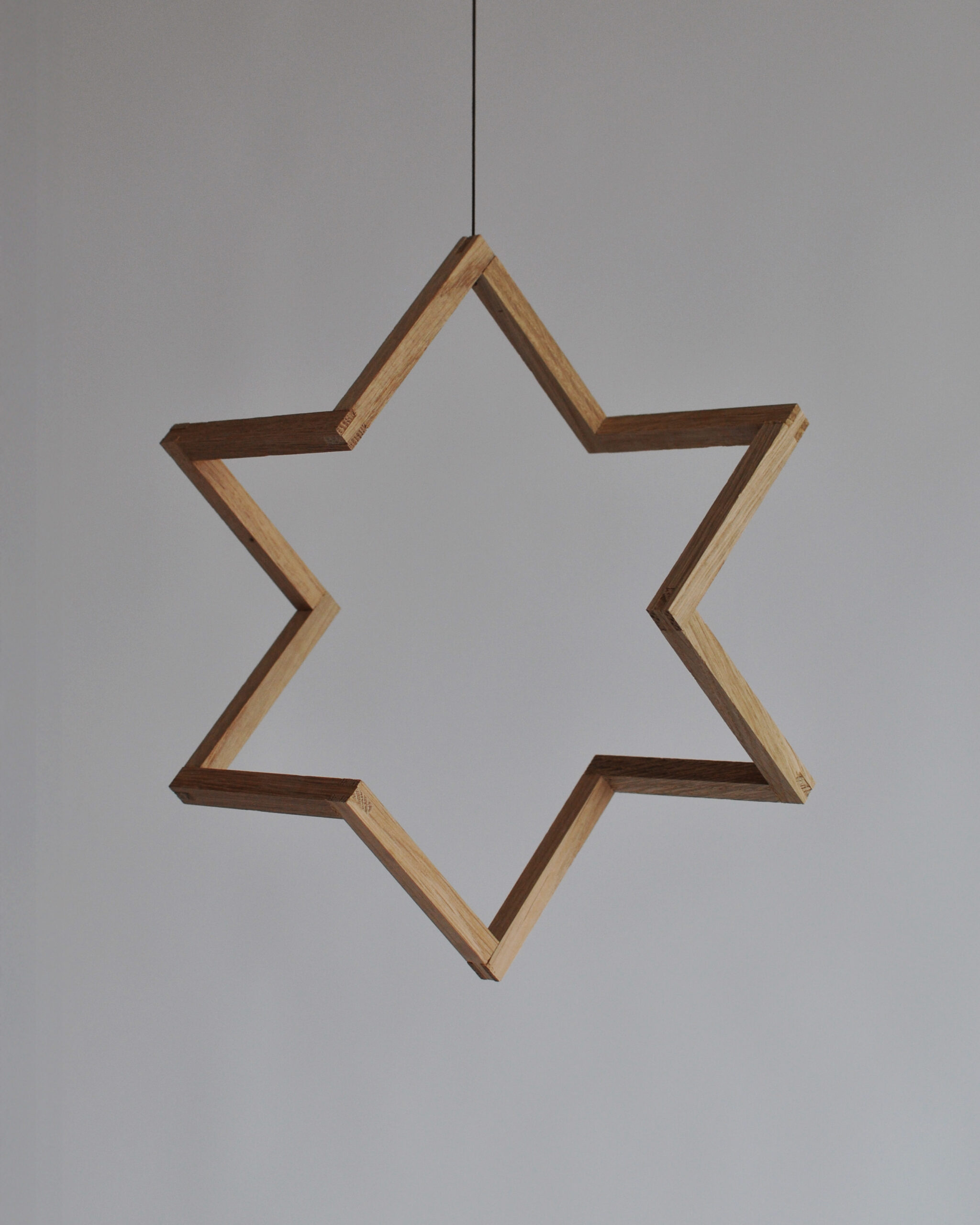 I en stille periode på værkstedet fik han lov til at udforske materialerne og ud af nogle lister og en sømpistol skabte han en stjerne. Et simpelt design som kom til at hænge i vores værkstedsvindue i mange år.